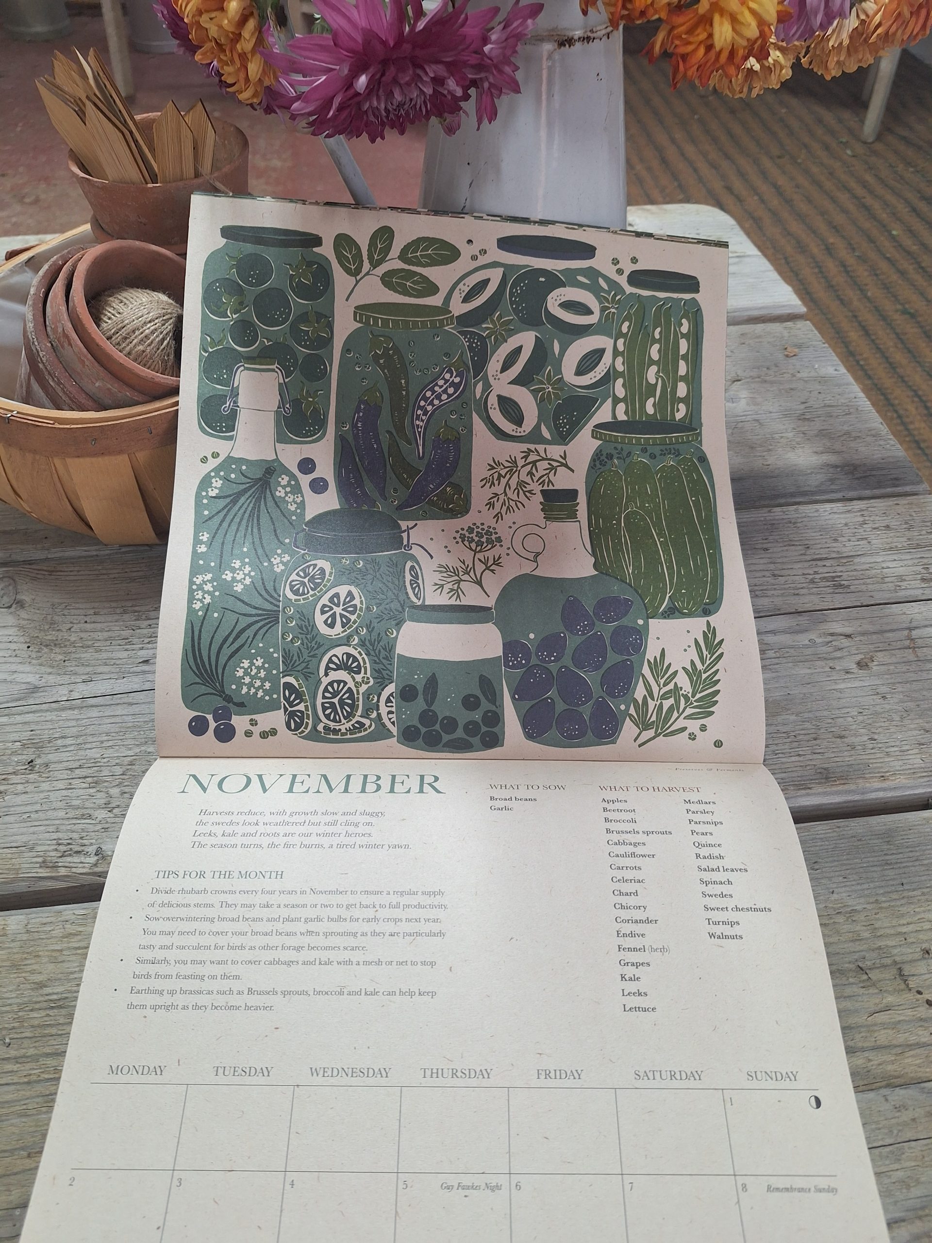 This calendar is a celebration of seasonal flowers, fruit and vegetables illustrated with full page original and multicoloured designs to bring joy and growing inspiration throughout the year. A perfect gift for gardeners, allotment growers, vegetable lovers and anyone keen to start growing their own fruit & vegetables,